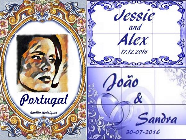 Também excelentes marcadores de mesa e todo trabalho artístico que desejar, como por exemplo, o retrato dos noivos pintados com aguarelas gravado no azulejo. Uma infinidade de ideias criativas que podem ser usadas com esse magnifico material que são os azulejos tradicionais portugueses.