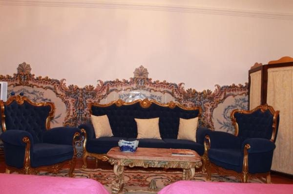 A buffet breakfast is served daily in the dining room. In the living room you will find an Art-Nouveau chandelier, a fireplace and sofas.