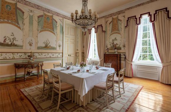 The Seteais Restaurant serves a fusion of Portuguese and international cuisine in an elegant and sophisticated environment, where it is possible to dine in one of the palace's lounges or next to the pool, combining refined flavors with an idyllic setting for an unforgettable evening.