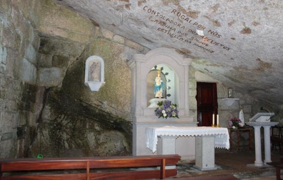 Este santuario destaca por su originalidad, ya que fue construido dentro de un acantilado. También cabe destacar la puerta de entrada que data de 1898, varias inscripciones grabadas en el techo y el marco enmarcado con la historia del santuario escrita por el padre José Maria Machado en 1851. En las inmediaciones del santuario, hay un quiosco, varias fuentes, las instalaciones. que brindan apoyo durante la romería anual y un mirador.