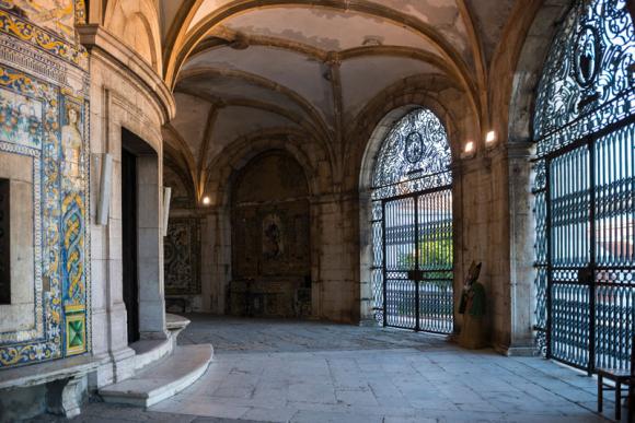 Clasificado como Monumento Nacional, tiene un plan centralizado que consiste en el presbiterio y la nave circular, flanqueada por la sacristía a la derecha y la antigua casa de despacho a la izquierda, precedida por tres puertas de entrada de hierro forjado, que datan del siglo XIX. XVIII, y por atrio o galilea semicircular, lo que le da una notable originalidad, reforzada por el revestimiento de azulejos policromados, de finales de siglo. XVII, de composición manierista y protobarroca, que enmarca y destaca los elementos arquitectónicos.