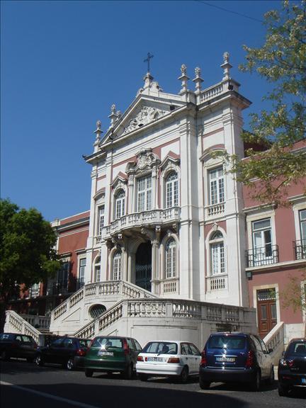 La elevación principal se divide en tres cuerpos articulados, donde el cuerpo central corresponde a la capilla, dedicada a Nossa Senhora da Conceição. Una escalera precede al galilee que conduce a la capilla, llena de estatuas de mármol de la escuela Mafra. En el exterior, la imponente fachada destaca por su corona de meseta y balaustres, por su borde con un frontón triangular, decorado en el tímpano, rematado por una cruz en un zócalo, y por el balcón central, con una balaustrada curva, para la cual se abren tres grandes ventanales. el central rematado por un frontón tripartito con las armas reales. Dentro de la capilla se organiza en un rectángulo con ángulos redondeados, la nave, con seis capillas laterales, que constituyen el Santíssimo Sacramento, debido a su profundidad, una unidad espacial autónoma, a la que se yuxtapone el presbiterio. El programa decorativo está inspirado en la obra maestra del barroco joanino, la Capilla de S. João Baptista, de la Iglesia de S. Roque, pero que ya le da un cierto sabor rococó tardío, que está abierto a manifestaciones neoclásicas. Destacan las pinturas trompe l'oeil de Pedro Alexandrino de Carvalho y el lienzo del altar principal, con el santo patrón, atribuido al pintor italiano José Troni, debajo del cual se colocó un friso de retratos de elementos de la familia real.