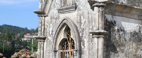 Un núcleo de interés patrimonial se desarrolla junto a la Iglesia de Santa María de Alvarelhos del siglo XVII, que incluye, además de la propia iglesia, el crucero de los años 40, el cementerio con algunos elementos de arquitectura neogótica y una colección de arte sacro visitable. en la residencia parroquial.