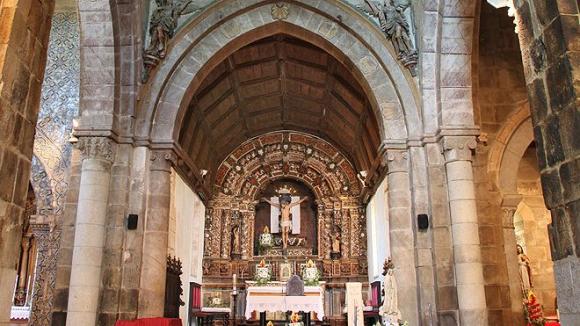 Luego visita el interior de la iglesia - pasando por el interesante portal románico -, donde te deslumbrarán los azulejos del siglo XVII en una de las paredes, con el retablo dorado del presbiterio y con varias imágenes en madera policromada. De la primitiva iglesia, que data del siglo XII, solo queda un fragmento de un friso y un interesante capitel donde se representa el Descenso de Cristo al limbo.