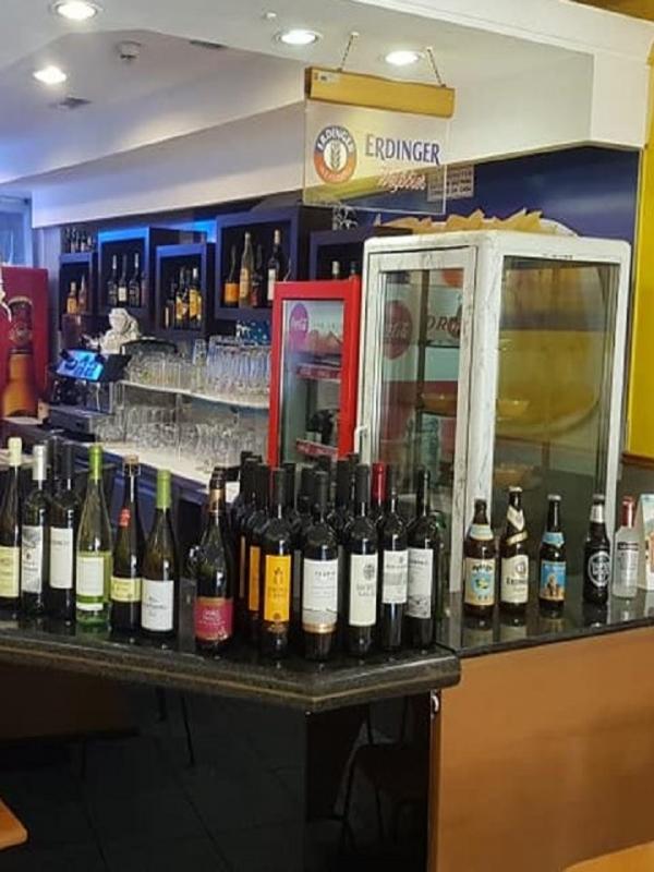 Brasserie avec une bonne sélection de bières et une carte des vins.