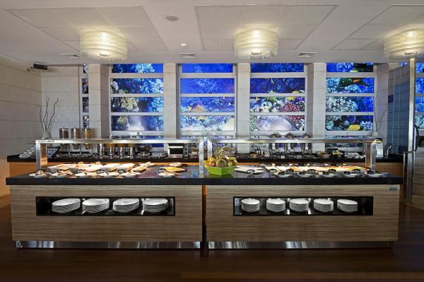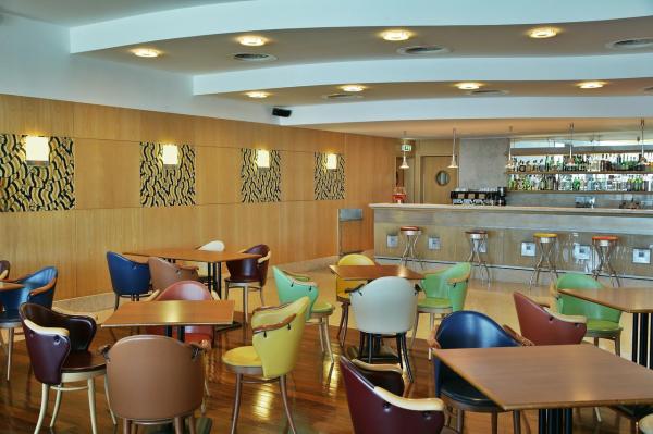 O buffet de pequeno-almoço é servido no hotel todas as manhãs. O Restaurante Espadarte serve refeições saborosas de estilo português, com ênfase em peixe fresco e especialidades de marisco. O Bar Caravela, localizado no último piso, oferece uma vista panorâmica sobre a baía e providencia um ambiente descontraído, ideal para relaxar enquanto saboreia uma bebida e aprecia o pôr-do-sol. O passeio marítimo apresenta vários cafés e lojas pequenas e pitorescas.
