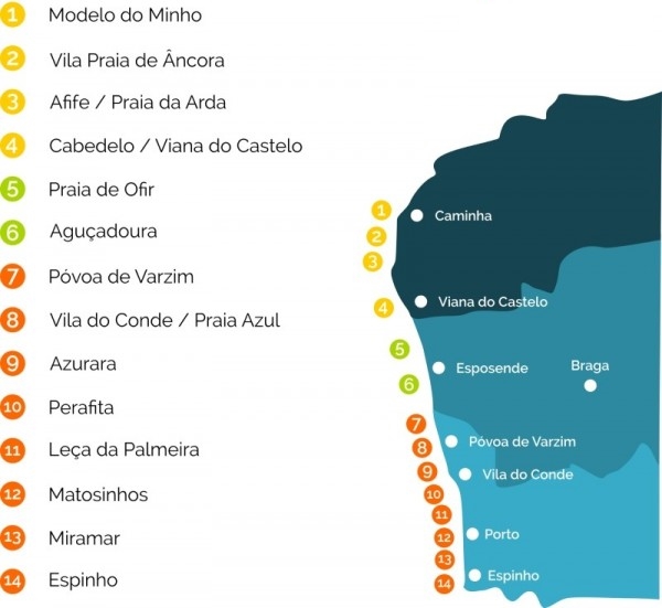 A sua extensa costa atlântica com as suas excelentes praias, associado ás condições climatéricas , permite aos praticantes de Surf de todo o mundo, a prática da modalidade durante todo o ano.